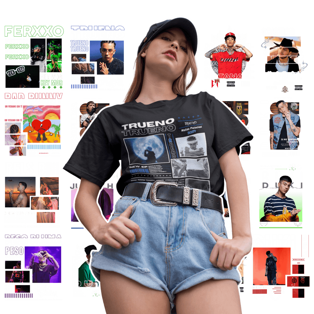 DISEÑOS EXCLUSIVOS PARA CAMISETAS DE TUS ARTISTAS-CANTANTES-BANDAS FAVORITAAS ! TODOS VIENEN EN FORMATO PNG Y PDF